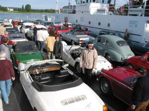 |  | Am Sonntagmorgen ging es schon um 8:30 Uhr gemeinsam zu einer Fahrt in die Eifel. Auf der Rheinfähre konnte das am Samstag geübte "dicht auffahren" dann vorgeführt werden. Mit mehreren Rangierversuchen passten schließlich alle Teilnehmer der Ausfahrt auf die Rheinfähre. |